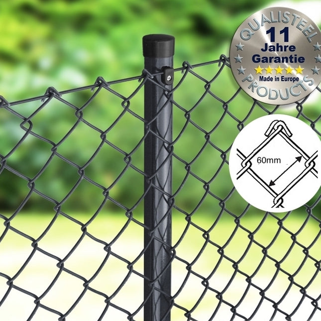 Komplettes Profi-Zaunset mit Rundrohrpfosten und allem benötigten Material für den Aufbau Ihres Zaunes. Profitieren Sie von unseren Maschendrahtzaun Komplett-Sets in klassischem Grün. Diese enthalten nicht nur alle für den Aufbau Ihres Zaunes benötigten Zubehörteile, sie sind gegenüber dem Einzelkauf auch noch deutlich rabattiert. Schlagen Sie 2 Fliegen mit einer Klappe. Gehen Sie sicher, kein dringend benötigtes Zubehörteil vergessen zu haben und sparen dabei auch noch Geld! Unsere Profi-Zaunsets beinhalten gegenüber vielen anderen im Netz angebotenen Maschendraht Zaunsets zusätzlich auch noch Geflechtspannstäbe und passende Schellen zum befestigen dieser an den Zaunpfosten. So erhalten Sie am Anfangs- und Endpfosten einen absolut sauberen Zaunabschluss. Die Maschendrahtzaun Profi-Zaunsets beinhalten neben der gewählten Maschendrahtrolle aus verzinktem Draht mit grüner Kunststoffbeschichtung in der kleineren Maschung von 50x50mm und einer besonders stabilen Drahtstärke von 3,1mm, natürlich auch die richtige Menge an Zaunpfosten und 2 Zaunstreben aus nach DIN EN ISO 10142 verzinktem und danach pulverbeschichtetem Rundrohr in grün RAL 6005. Ebenso enthalten ist das auf das Set angepasste Zubehör wie Spanndraht, Bindedraht, Drahtspanner, Geflechtspannstäbe und Schellen für Geflechtspannstäbe. Alles natürlich in grün und aufeinander abgestimmt. Da wir nicht wissen, ob und wie viele Ecken Sie in Ihrem Zaunverlauf haben, sind standardmäßig 2 Zaunstreben für den Anfangs- und Endpfosten enthalten. Falls Sie weitere Zaunecken in Ihrem Zaunverlauf haben, müssen Sie pro Zaunecke jeweils 2 zusätzliche Zaunstreben dabei bestellen. Wenn Sie einen längeren Zaunbedarf als die angebotenen Zaunsetlängen haben, müssen Sie gegebenenfalls mehrere Zaunsets bestellen. Da bei jedem Zaunset 2 Zaunstreben dabei sind, haben Sie somit auch direkt schon Zaunstreben für weitere Zaunecken. Wir liefern ausschließlich westeuropäische Qualitätsware zum Erhalt von westeuropäischen Produktionsstandorten und um Ihnen die gewohnt herausragende Qualität zu gewährleisten. 11 Jahre Garantie gegen Durchrostung! Top-Qualität: verzinkt + grün beschichtet Inhalt Zaunset: 1 Rolle Maschendraht verzinkt + grün beschichtet50X50X3,1mm, 25m lang, verschiedene Höhen, je nach Auswahl 11 Stück Zaunpfosten aus Rundrohr Ø40/50 x (Länge: Zaunhöhe + 500mm) x 1,5mm Wandstärke ab Zaunhöhe 1,50m kommen 50mm Pfosteninnen + außen verzinkt nach DIN EN ISO 10142 + grün RAL 6005 pulverbeschichtet, inkl. vormontierten Drahthaltern und Pfostenkappe 2 Stück Zaunstreben aus Rundrohr Ø38 x (Länge: Zaunhöhe + 500mm) x 1,5mm Wandstärkeinnen + außen verzinkt nach DIN EN ISO 10142 + grün RAL 6005 pulverbeschichtetinkl. Strebenkappe und Metallschelle Ø 42mm, je nach Auswahl der Zaunhöhe 3 oder 4 Stück Drahtspanner N°2 grün, je nach gewählter Zaunhöhe 2 Stück Geflechtspannstäbe Länge je nach gewählter Zaunhöhe 6 oder 8 Stück Schellen grün für Geflechtspannstäbe, je nach Auswahl der Zaunhöhemit Hakenschraube aus Edelstahl 1 Rolle Spanndraht 100m oder 150m, je nach gewählter Zaunhöhe, Ø 3,1mm Drahtstärke 1 Rolle Bindedraht 50m x 1,15mm grün 1 Aufbauanleitung Bei Montage über Eck benötigen Sie 2 zusätzliche Streben pro Ecke.